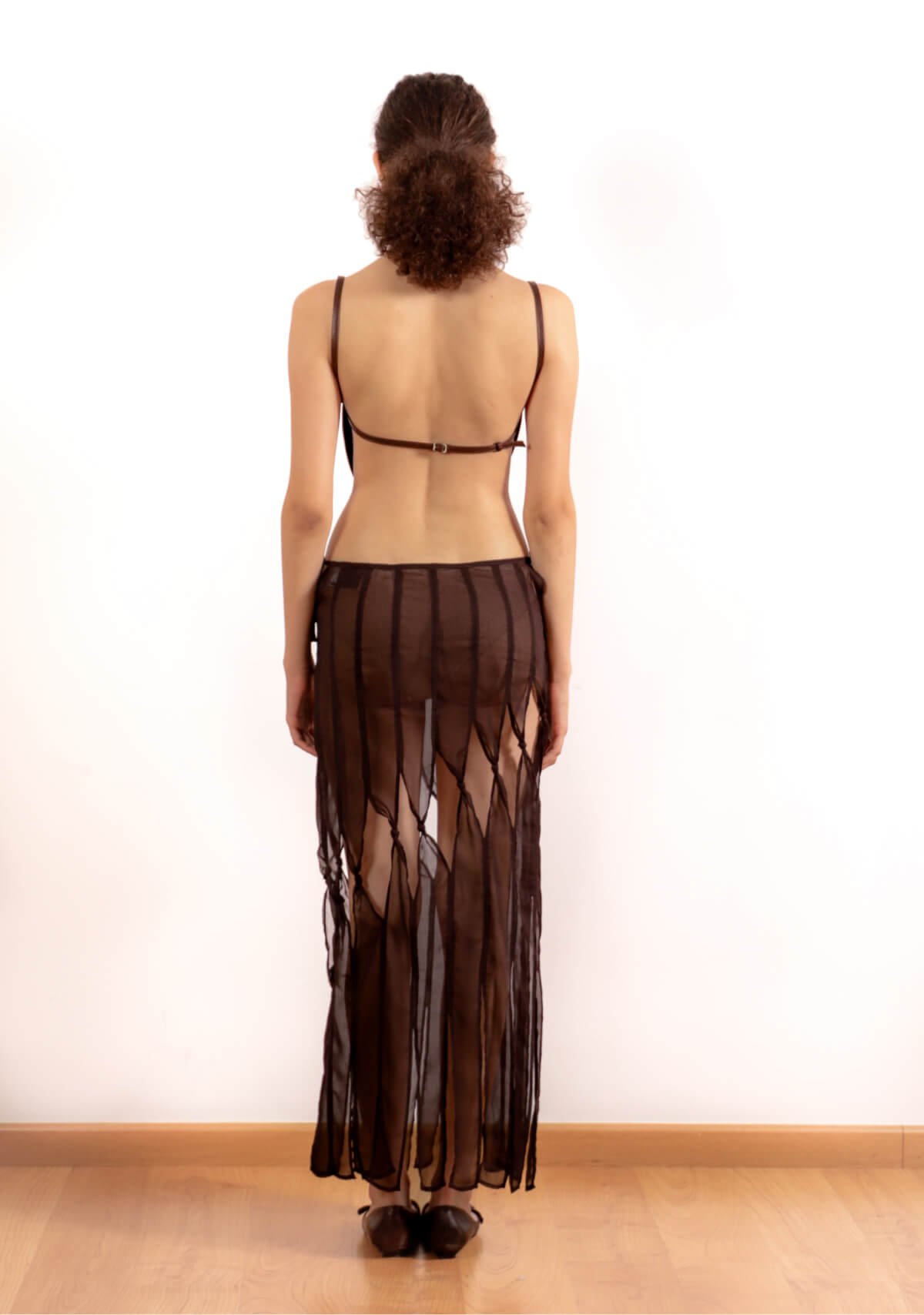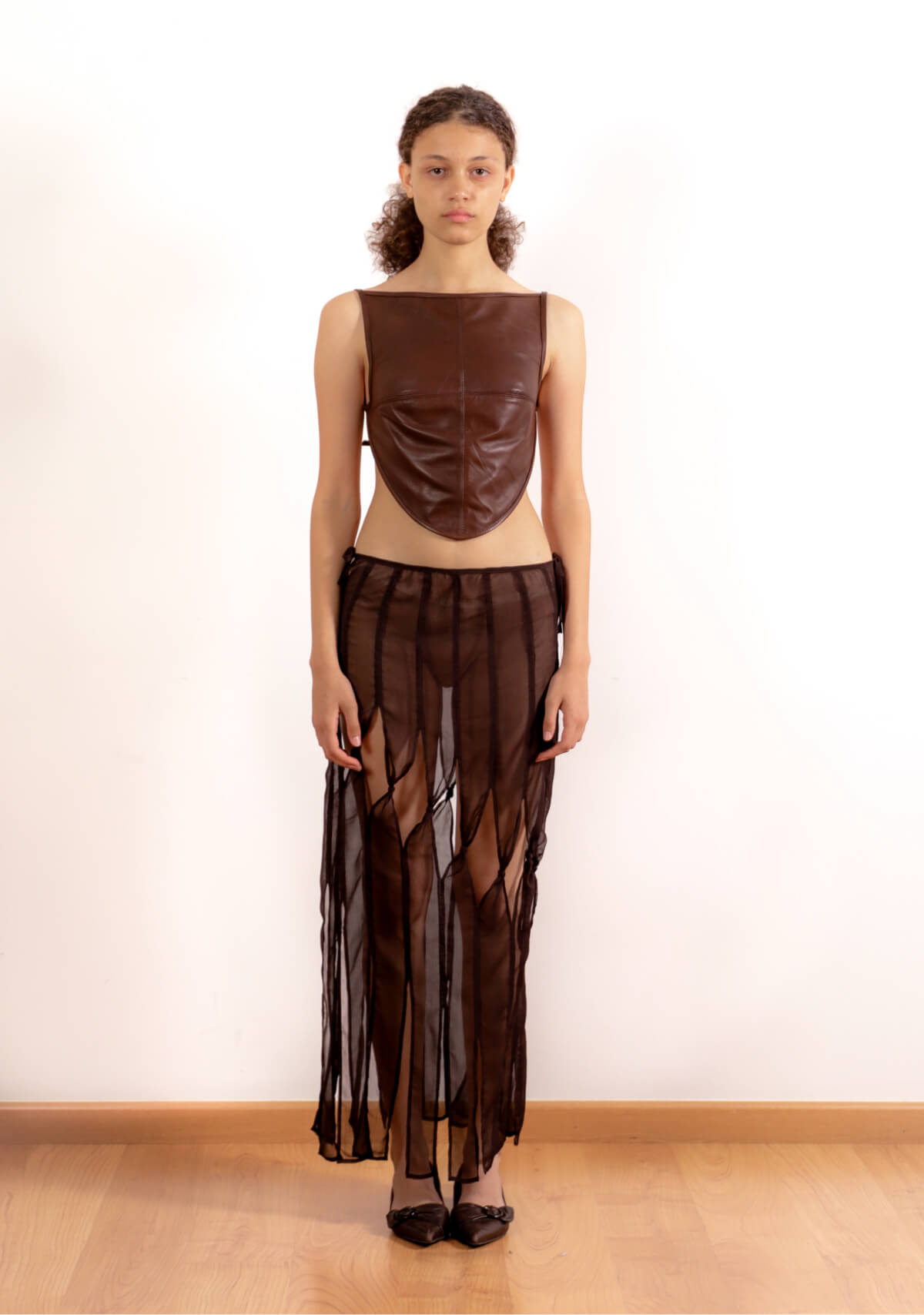 The model is 173cm and wears size S. Some pieces designed in an oversized or cropped way might not fit directly within these measurements. We recommend to contact us at sales@javierguijarro.com if you have any questions.